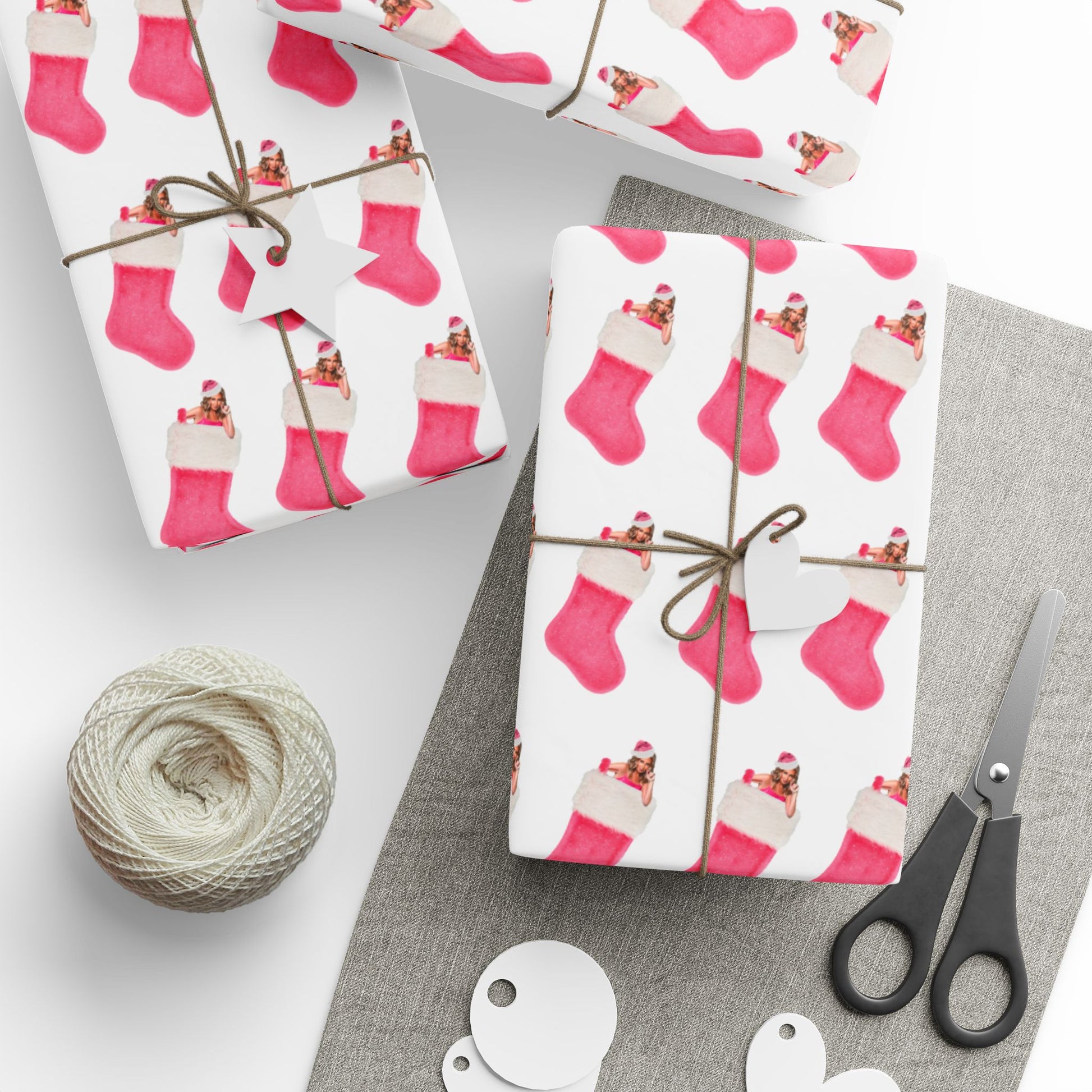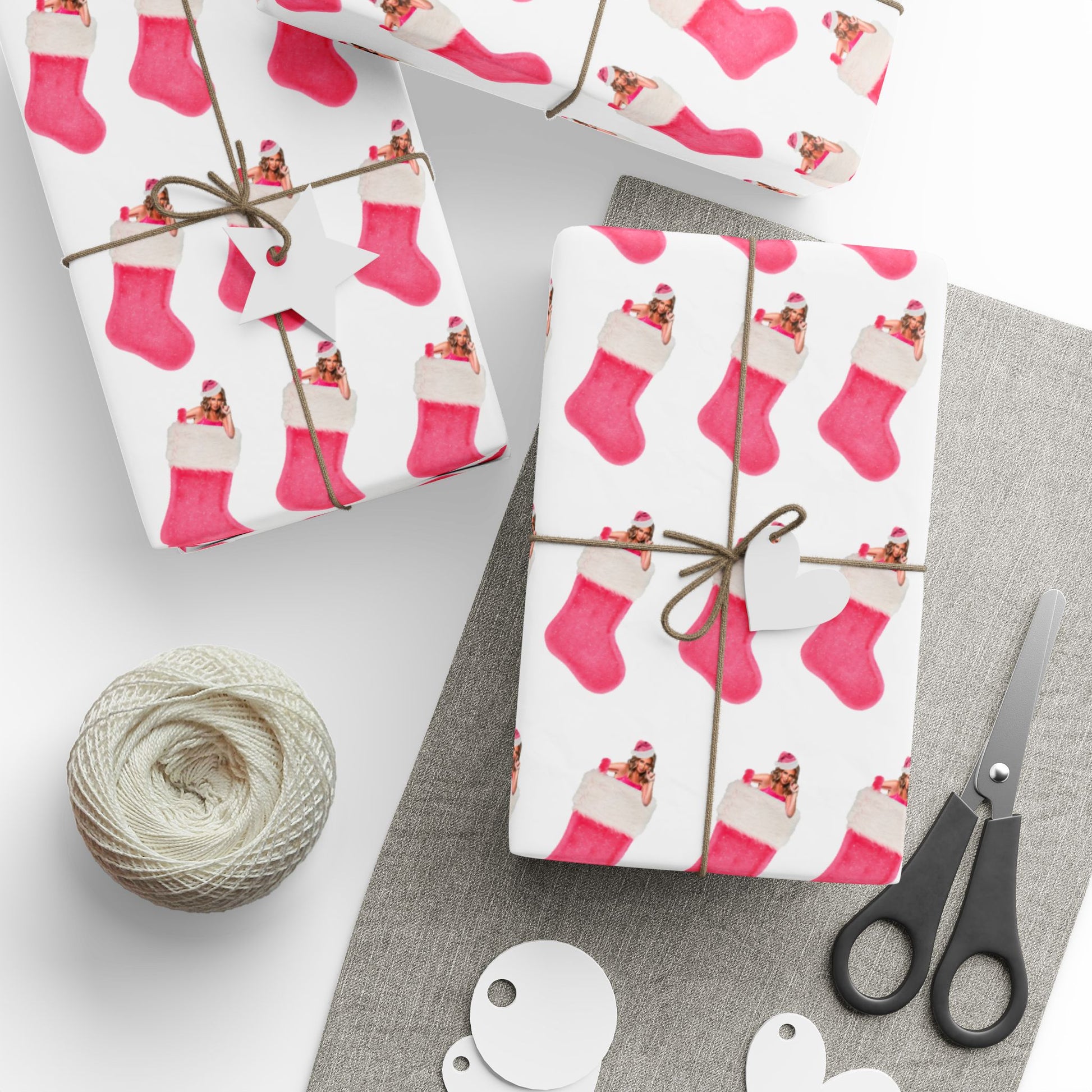 Sonja In Your Stocking - Sonja Morgan Pink Holiday Stocking Pattern Wrapping Paper